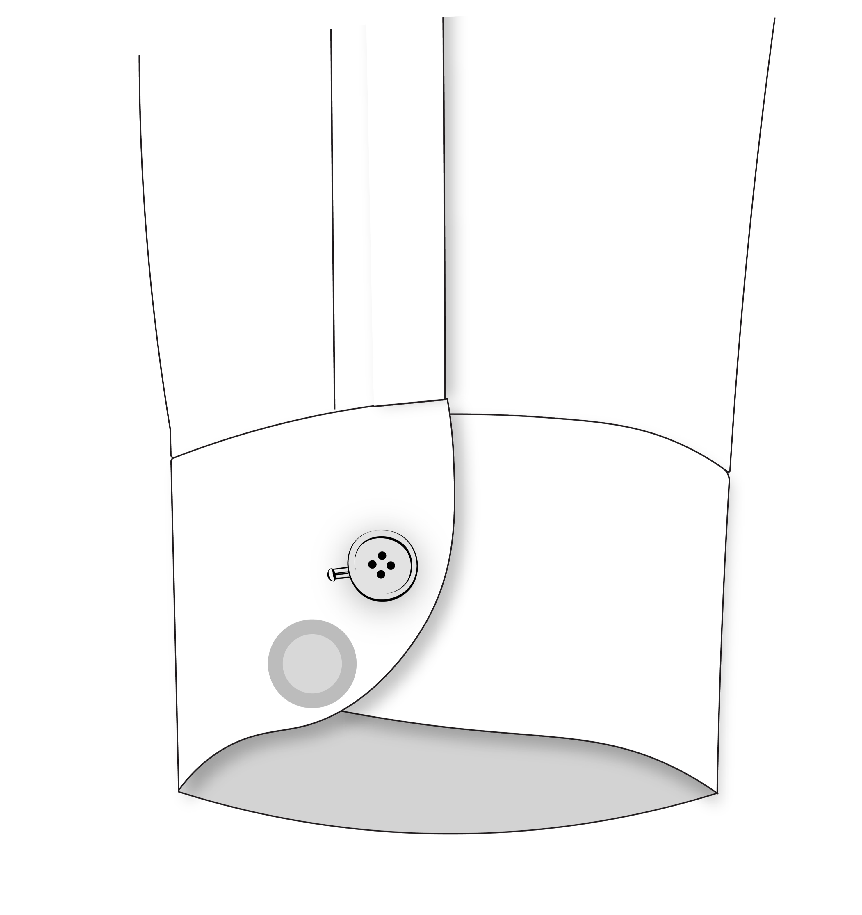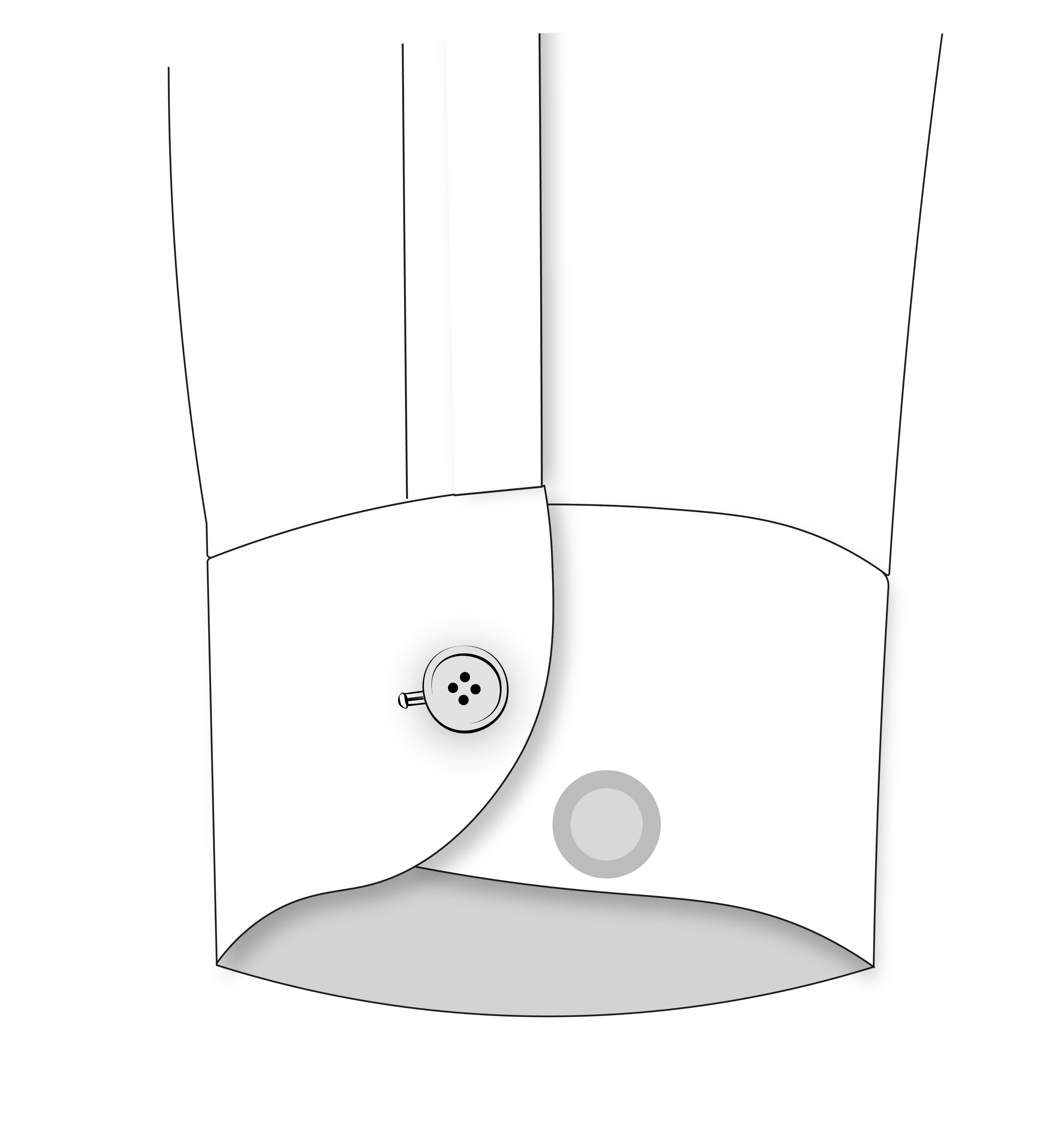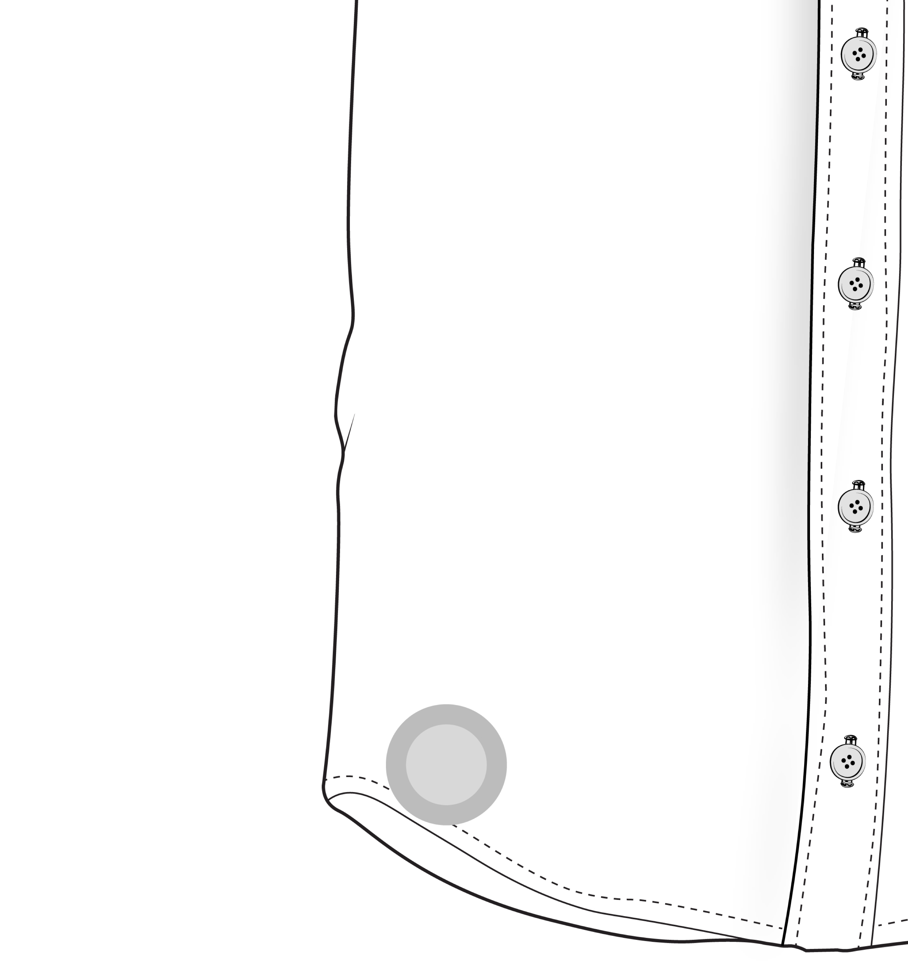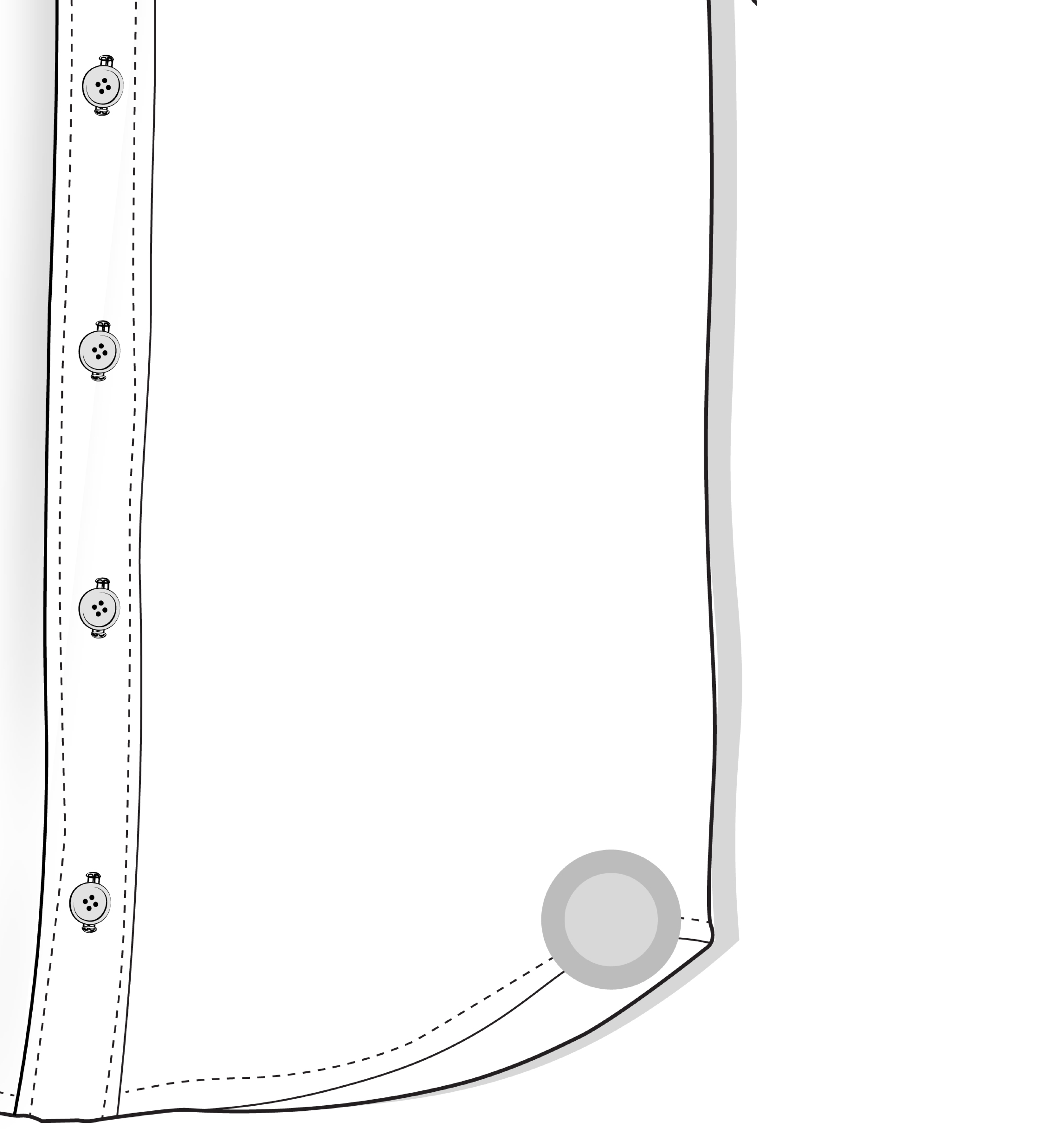 If the waist fits well in the back but is loose in the front, causing the front panels to flare outward — use this tool to remove the excess and bring the shirt closer to the body.