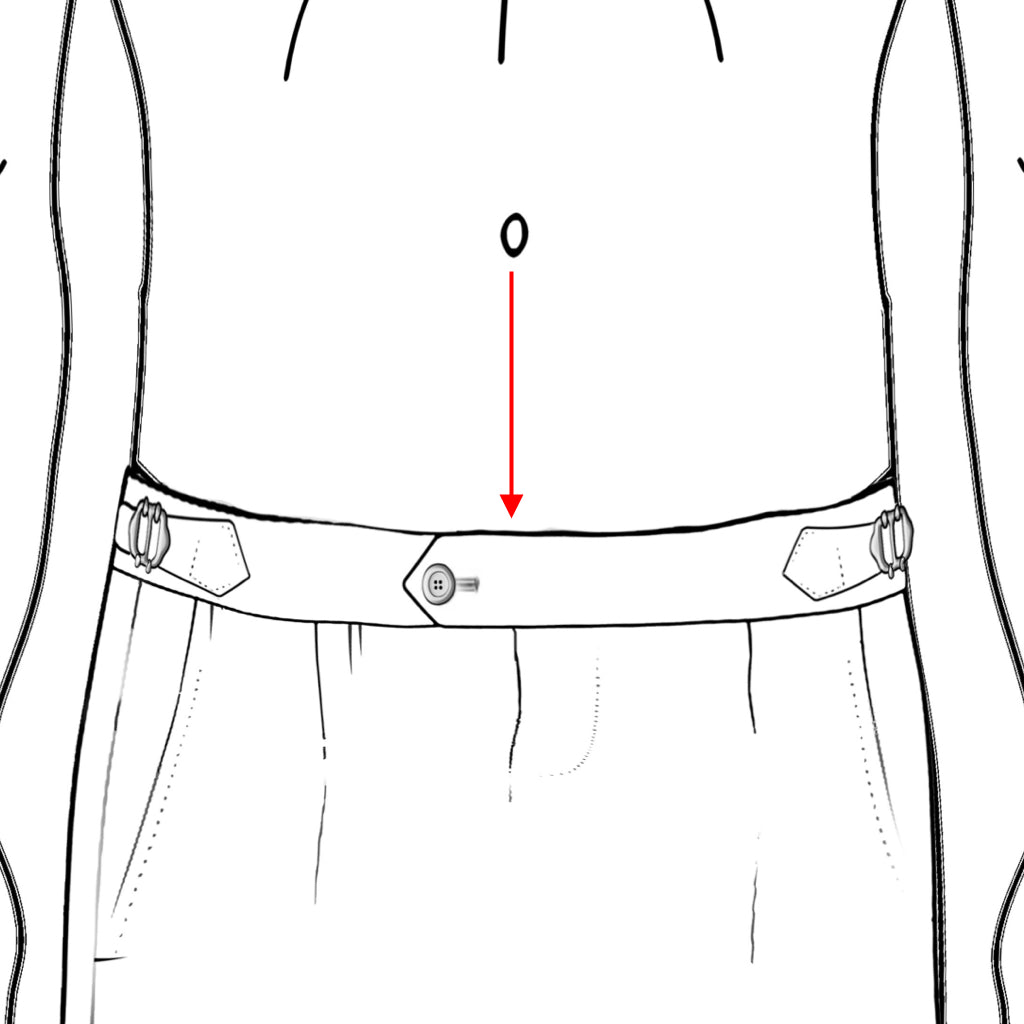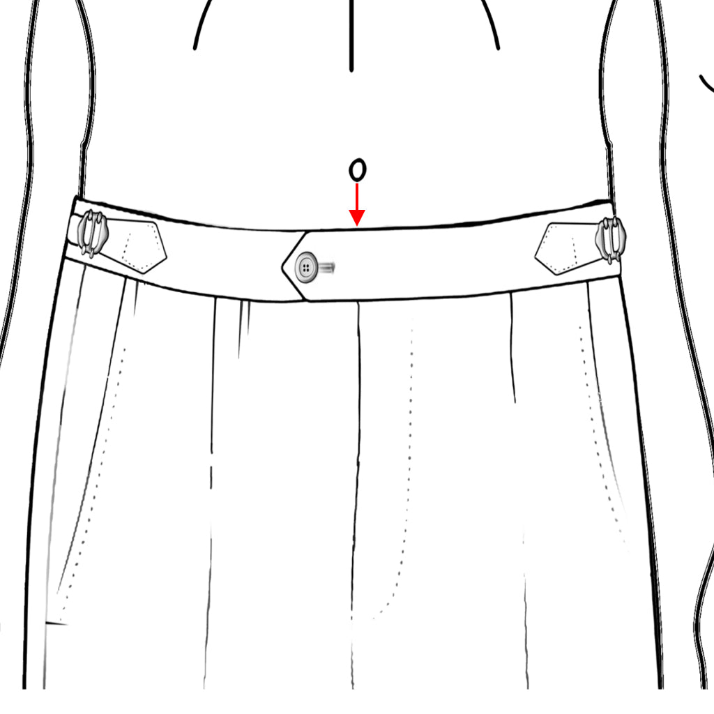 Straight hips (most common): The waistband sits evenly on the body — level from front to back — which is typical for most individuals. This is the default cut used in standard trouser patterns.