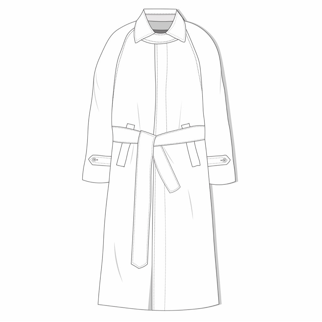 Taupe Yak Raglan Coat with a double-breasted front, raglan sleeves, and a belt. Crafted from yak wool, also known as Tartary Ox, sourced from the Tibetan region. A distinctive blend of classic tailoring and relaxed structure.